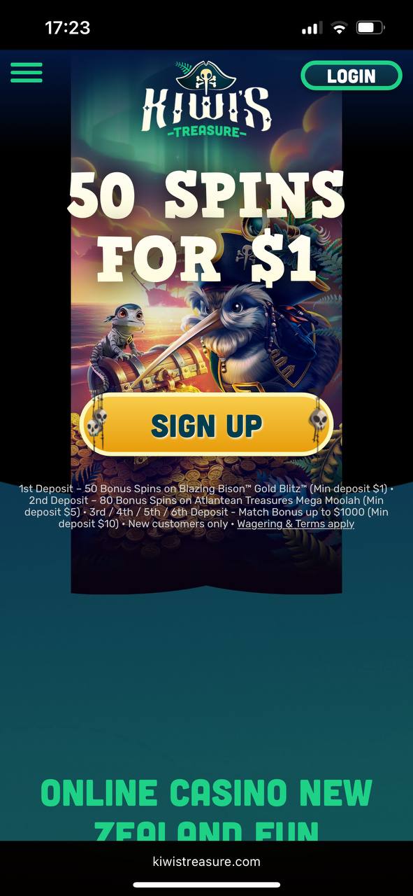 I was really impressed by the offer from Kiwi’s Treasure. Giving away a single dollar to play 50 free spins on Blazing Bison Gold Blitz is an absolute steal. The gameplay was incredibly smooth, and I was given a feel of the casino without having to spend any of my money. It is definitely one of the smartest ways to test a new casino.