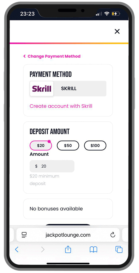 Deposit options: Visa, Mastercard, Skrill, Neteller, Apple Pay, Bitcoin...