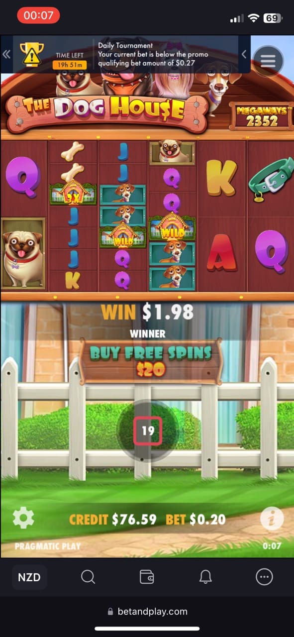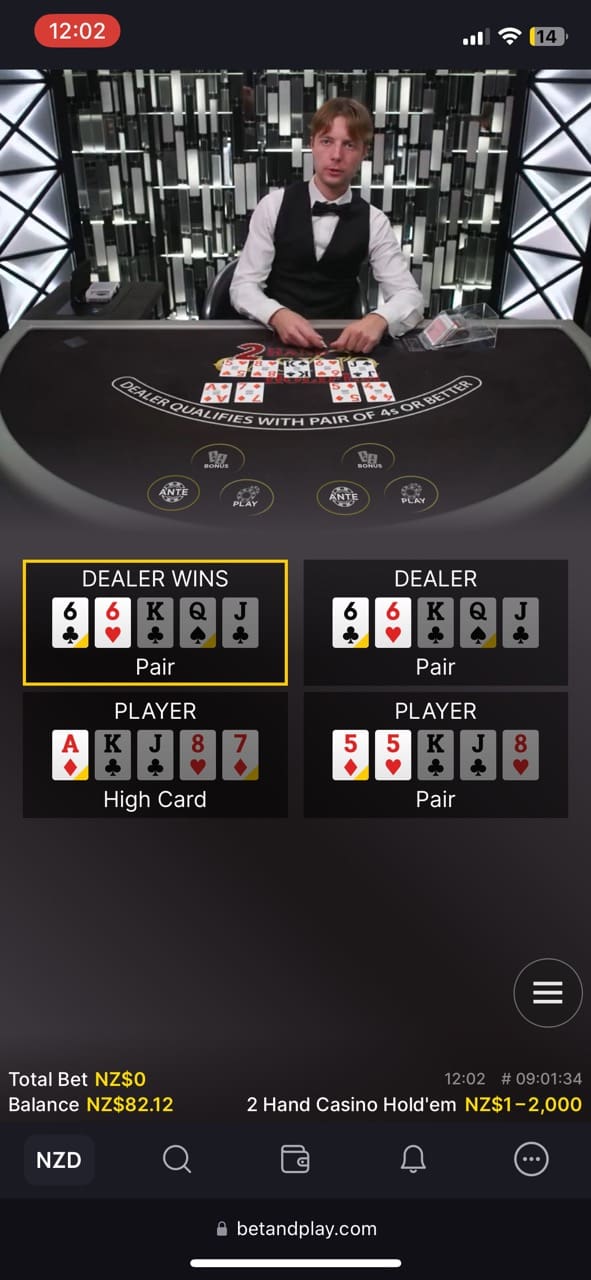 I started playing slots from the Top Games category. Many of them are provided by Pragmatic Play, which are my favorites, so I really enjoyed my experience. While playing the Ramses Book pokie, I managed to unlock a bonus game during which I won as much as 19.60 NZD. I then moved to the Live Casino page, and tried a few Poker games, and checked the Aviator game from the Instant Games category.