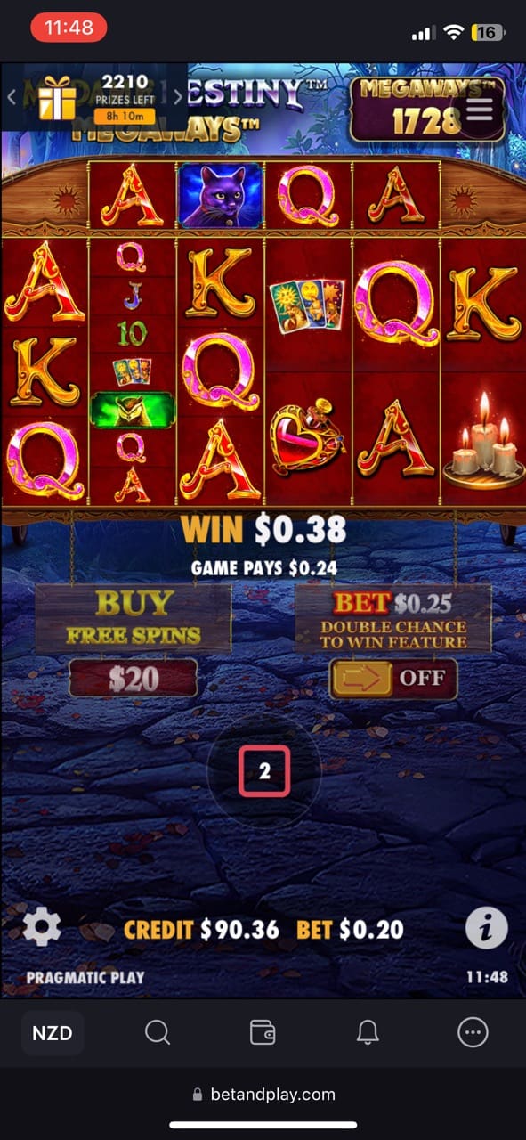 So, with my deposit, I got a 200%bonus + 50 free spins on the Gates of Olympus slot. I won 4 NZD during the free spins feature. The bonus wagering requirements are x40. The thing that disappointed me is the bonus rule excludes jackpot games.