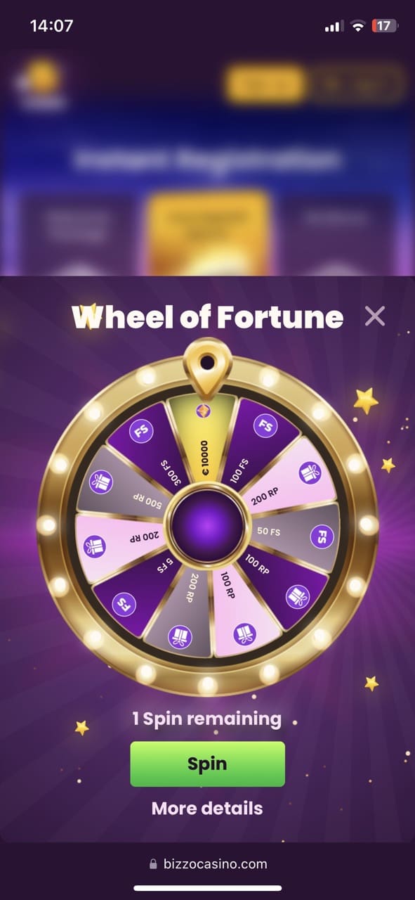 Those Kiwi casino customers who are willing to make a deposit of 30 NZD will be able to spin the Fortune Wheel and receive a random bonus. Take a chance and see what Fortune brings you at Bizzo.