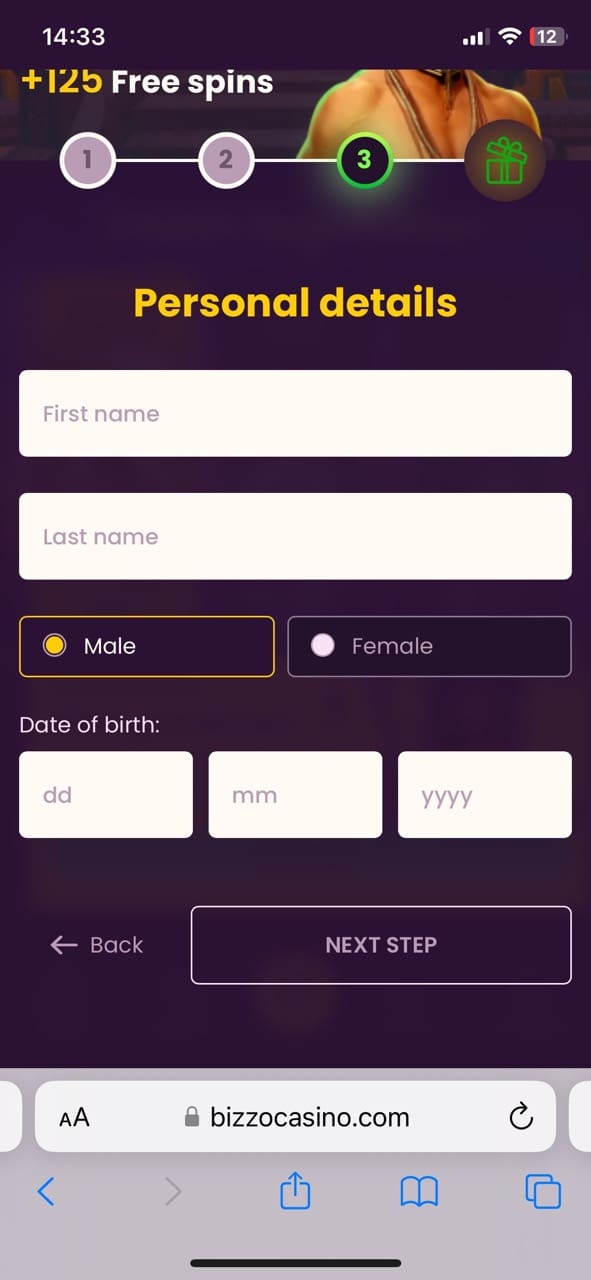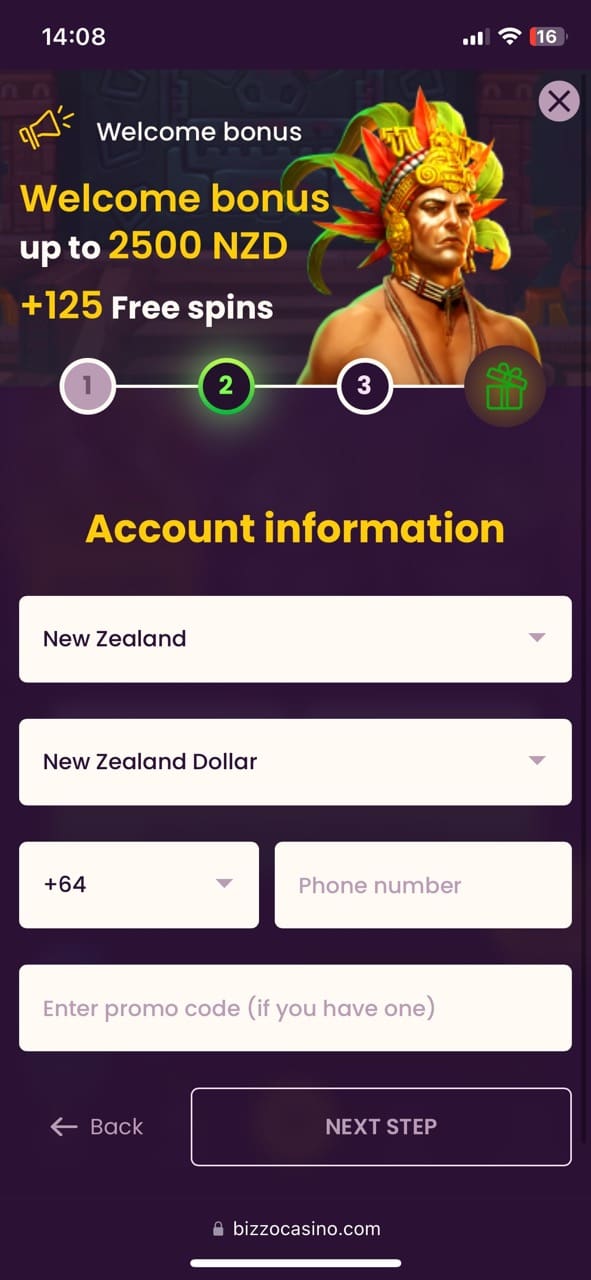 Before you can test all the games as I did and claim a welcome bonus along with other generous promotions Bizzo online casino has prepared for Kiwi players, you have to complete registration. THis is how it is done: