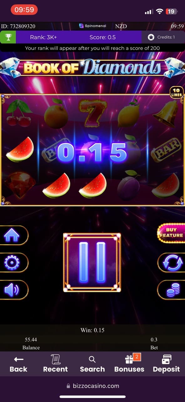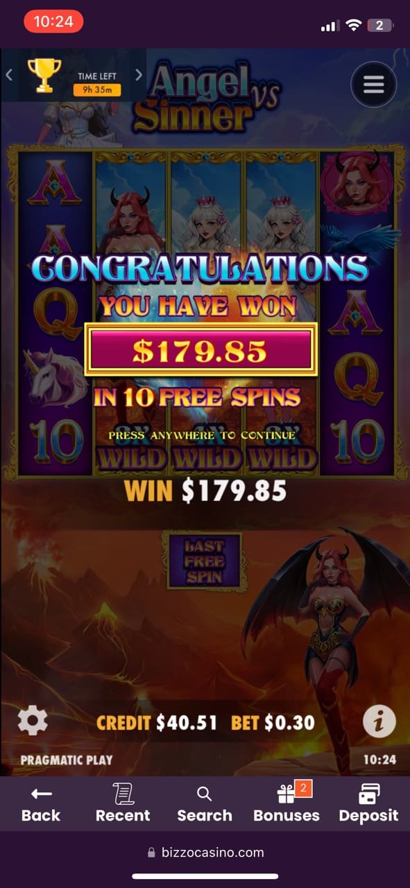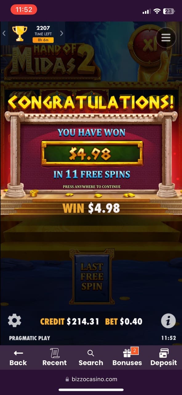 I was stoked with all the game titles I picked: almost each has free spins and bonus rounds. The games I played included Gates of Olympus 1000 where 4 scatters gave 15 free spins with winnings of 2.96 NZD, Moon of Egypt with a bonus game and winnings of 16.40 NZD, Big Bass Bonanza didn’t have free spins but I still managed to win 6 NZD, Book of Dragon Hold and Win, Sizzling eggs where after landing 3 scatters I got 10 free spins and won 6.73 NZD, Samba Da Deuza, Book of diamonds, It’s a Joker with a few free spins, Aztec Clusters, Angel vs Sinner where 3 scatters unlocked 10 free spins and a landed a staggering win of 179.85 NZD. That’s choice! Then I also played Hands of Midas II, where 3 scatters unlocked 11 free spins, and I managed to win 4.98 NZD. Also, I managed to win 18.90 NZD at Wisdom of Athena 1000 and 6.20 NZD at Beast Band.