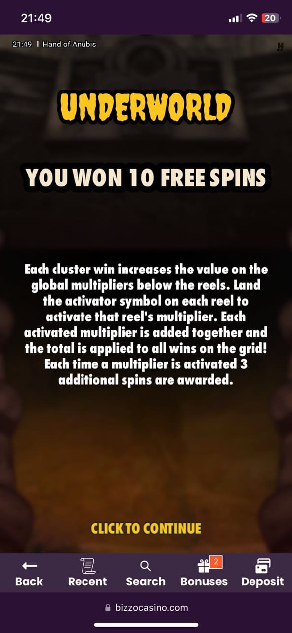 So, let me introduce the experience I had with the Bizzo operator. Luckily, it was one of the best online casinos I had to visit and review, so I look forward to telling you all about it. I loved the fact that once you open the casino’s official website, you get to see the Fortune Wheel. It does not require registration. Simply spin the wheel and see what prize you have. I managed to win 5 free spins for the Book of Nile Revenge pokie, which was amazing for a start.