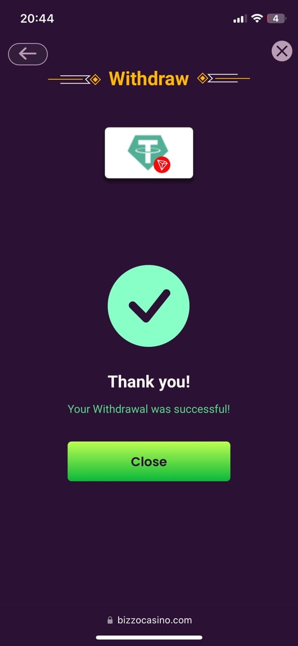 When I wanted to withdraw my winnings, I used the same payment method – USDT trc20. I managed to withdraw my winnings within 1.5 working days without undergoing verification. This was a massive advantage.