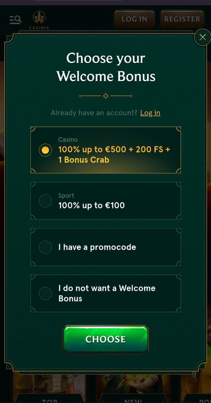At Casinia, the main welcome bonus is the 100% deposit match offer where you can double your money up to 1,000 NZD. You also get 200 free spins and one Bonus Crab that can get you some small wins.