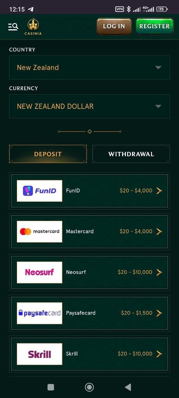 - 20 NZD minimum deposit