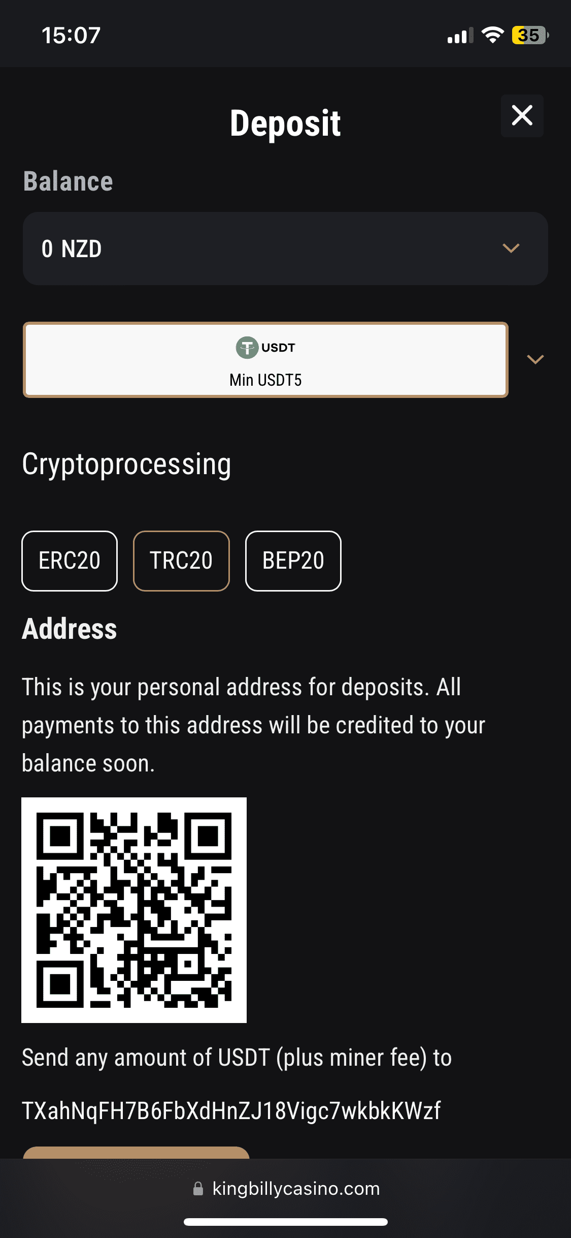 Skrill and Visa are two most used ways to deposit on King Billy. Besides, there are also Mastercard, Bitcoin, Litecoin, Ethereum, Tether, and Paysafecard available to deposit for NZ.