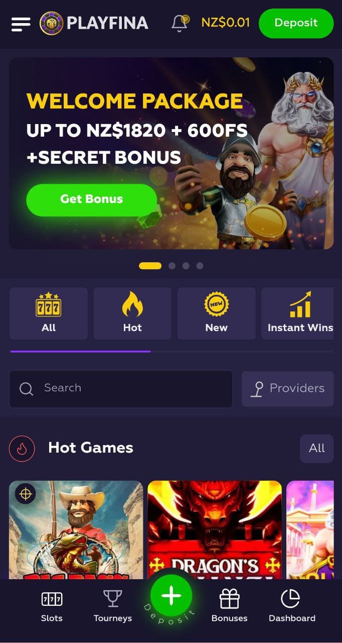 Follow the links on this page to visit the Playfina website on your mobile or desktop device, and you’ll be taken to the signup screen. Enter your details, verify your email and you’re ready to go. After that you can make a deposit – NZ$20 minumum, or NZ$35 minimum if you want to claim a bonus.