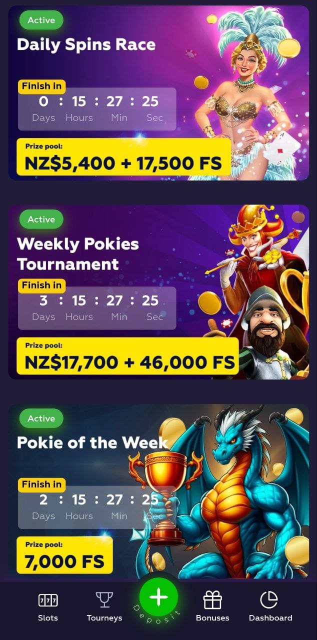 | Daily Spins Race | NZ$3,500 + 13,000 free spins |