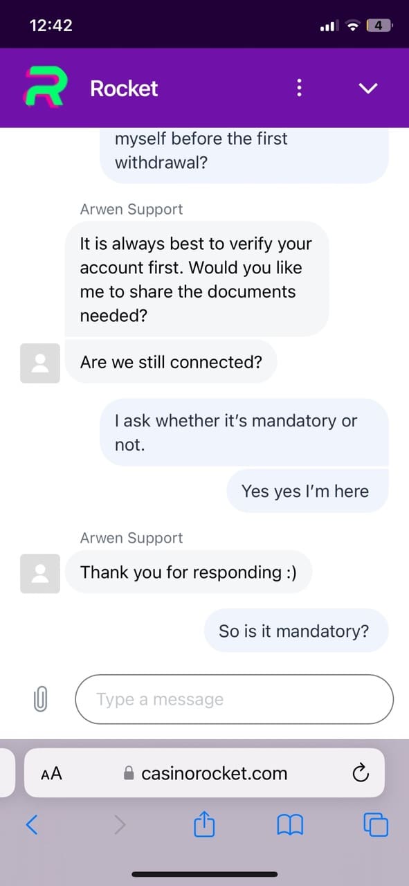 Moving to withdrawals, I had two options: Skrill and Bank Transfer. Casino Rocket requires verification before you request a cashout. The minimum sum available for withdrawal is 20 NZD. If you’re interested in fast payouts go to this page with only fast withdrawals nz casinos.