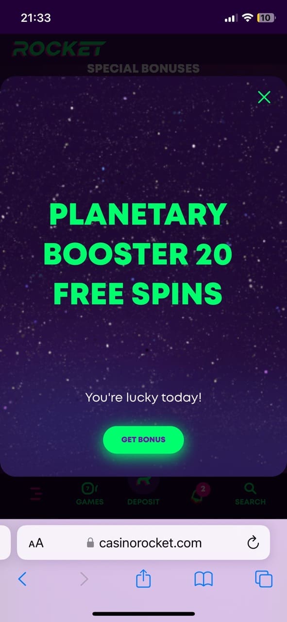 Casino Rocket offers Kiwis to chance their luck at the Space Dragon Lottery every single day. The minimum deposit for participation is 30 NZD. You will be able to collect 5 tickets to participate in the promotion. The maximum withdrawal at the lottery is 75 NZD. The lottery prizes are subject to x20 wagering. Note that you can buy lottery tickets after making the 1st deposit.
