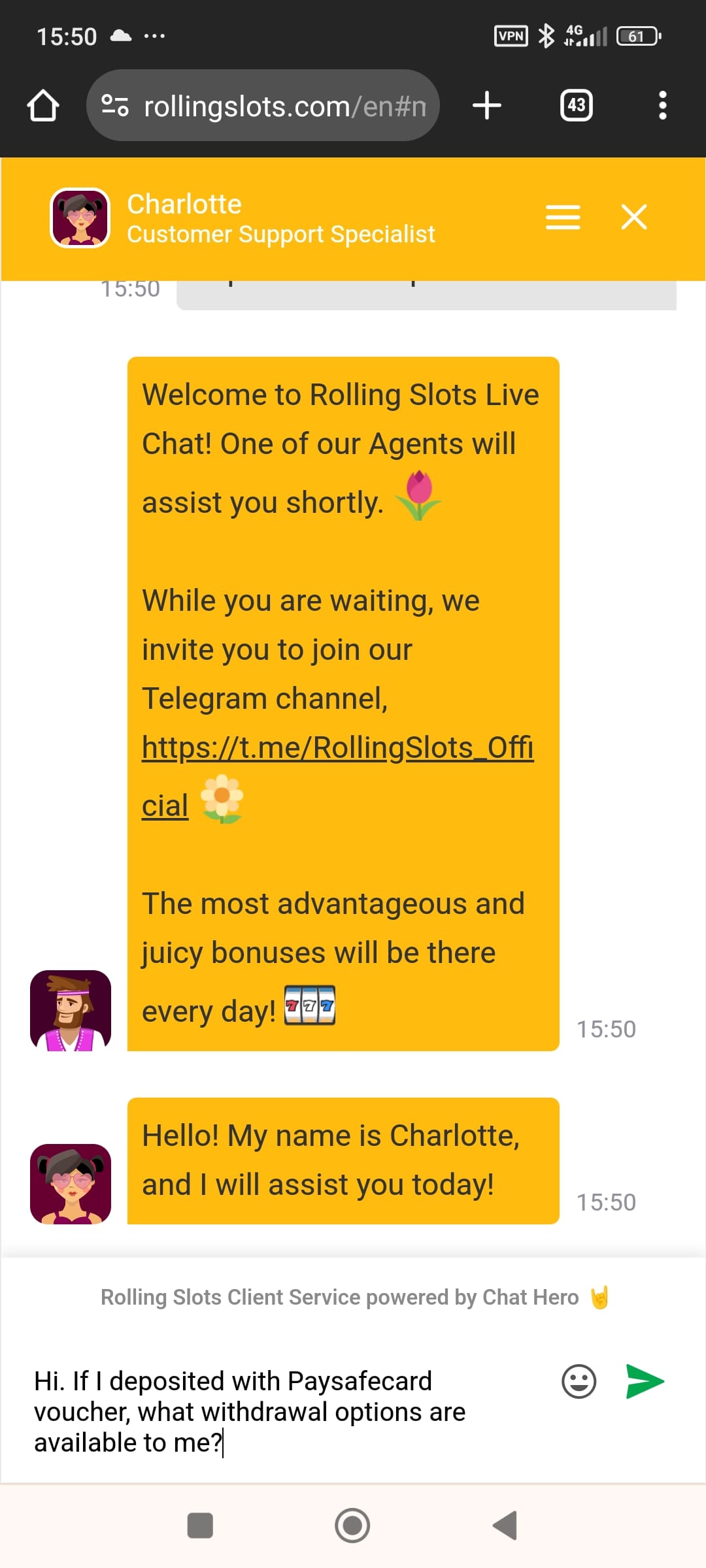 Customer support is bot-like and it quotes terms and conditions. So don’t ask them difficult questions. I asked what the wagering requirements for the welcome bonus were, the operator first asked me for my name and email (as if the answer will apply to my account only and not all accounts!) and then quoted the T&Cs. Could have quoted them right away.